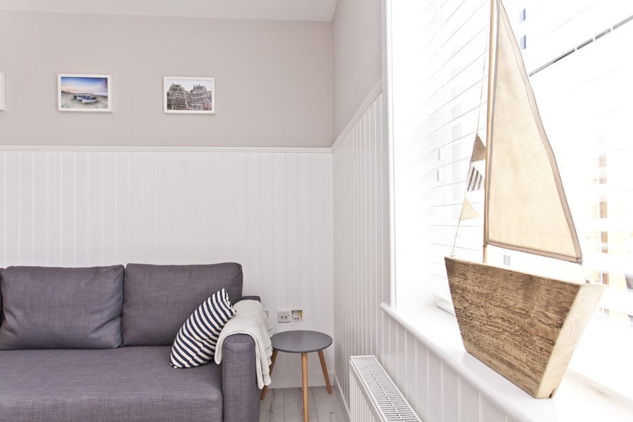 Seaside Cottage has 2 double bedrooms. Bedroom one has a king size or twin beds, sea view & en-suite shower. Bedroom 2 has a double bed with beautiful sea views. There is also a comfy double sofa bed available.